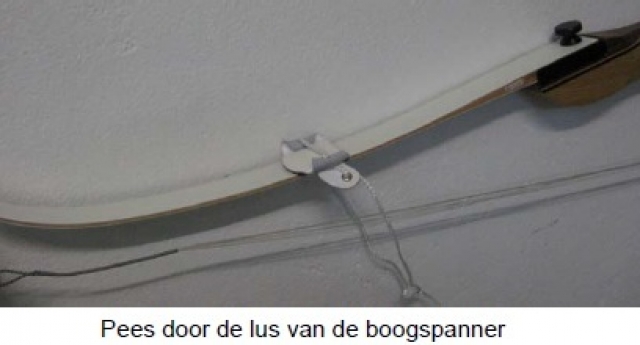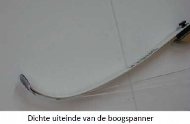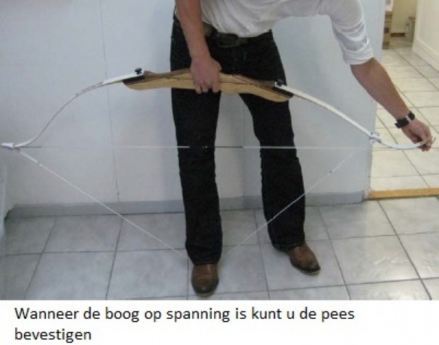Als laatst bevestigt u met d.m.v. onderstaande twee methodes de pees, en brengt u de boog op spanning: