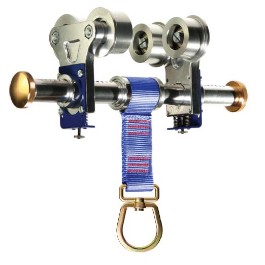 De Climbtech Beam Trolley is een mobiel ankerpunt welke eenvoudig verplaatst kan worden d.m.v. de aluminium wieltjes. Hij is geschikt voor gebruik op permanente balken met een I